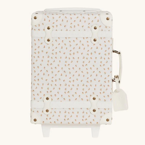 De prachtige kinder reiskoffer See-Ya Suitcase van Olli Ella. In een mooi handzaam kinderformaat en dat is eigenlijk best jammer want wij willen ook wel zo'n mooie koffer om mee op reis te gaan!