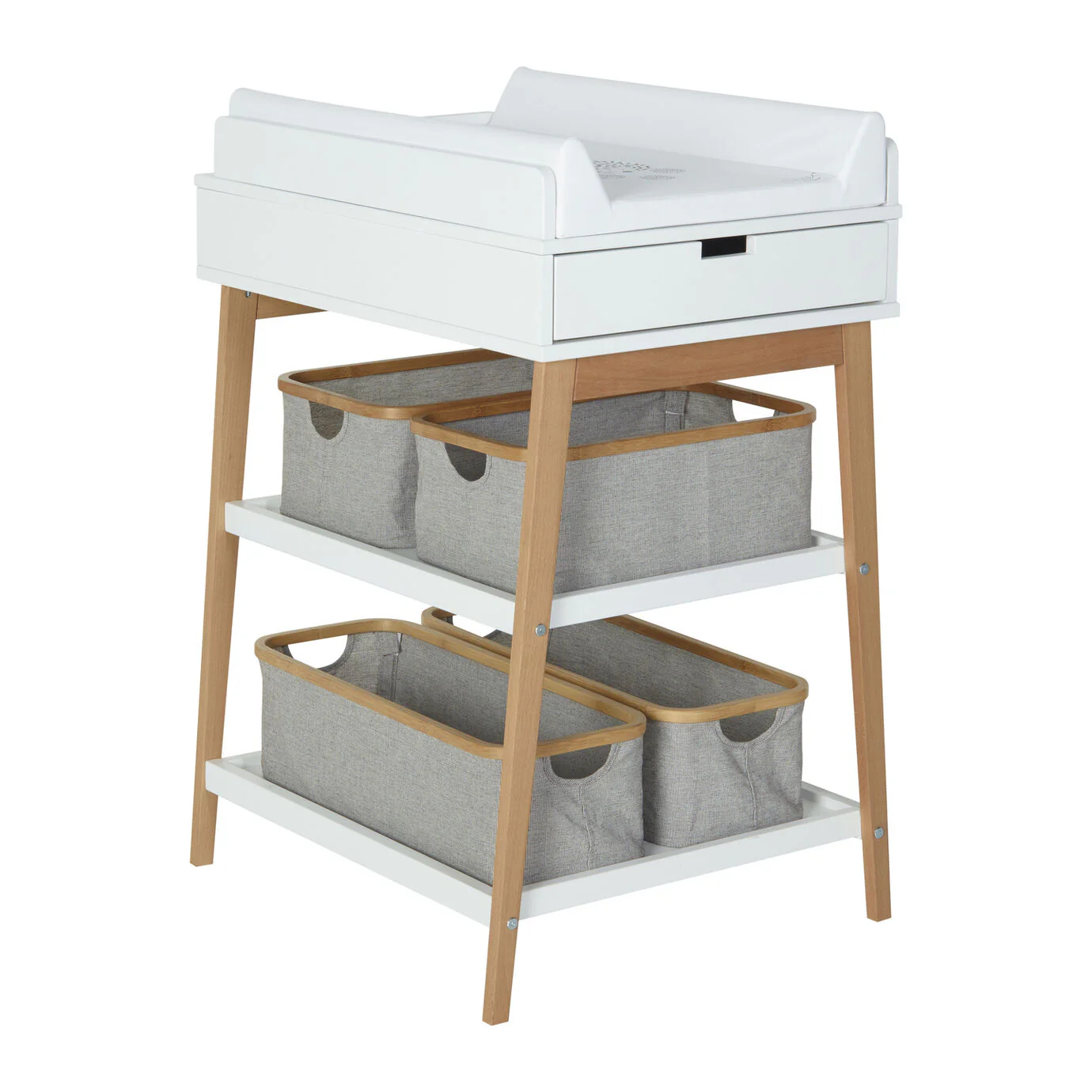 Deze prachtige luiertafel met extra lade in de kleur white & natural is niet enkel erg handig om je kindje in te verschonen, maar staat ook nog eens supermooi in je interieur met zijn tijdloze design.